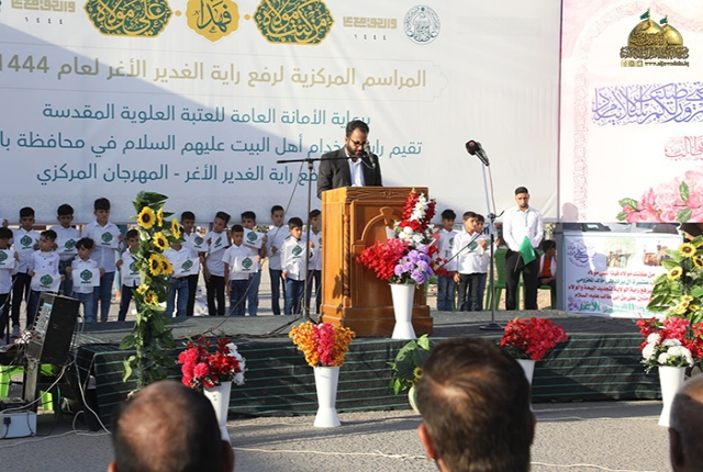 وشهد الحفل مراسم رفع راية الغدير وسط أجواء ولائية مباركة، كما تخلل الحفل إلقاء كلمات عدّة بيّنت أن يوم الغدير هو جوهرة عظيمة وما ينبغي على المؤمن أن لا يفرّط فيها وأن يحتفظ ويهتدي بها في قلبه وأن يتمسك بعقائد العترة الطاهرة "عليهم السلام" وبأخلاقهم ومبادئهم، وأن نور الغدير يستمر توهجاً في كلّ زمان، ويكتمل نوره تحققاً لتُظهره الإرادة الإلهية مكتملةً في عصر ظهور إمامنا المنتظر "عجل الله تعالى فرجه الشريف" ليظهر الدين كلّه حتى يصل الإنسان إلى الكمال المنشود في دولته الكريمة.