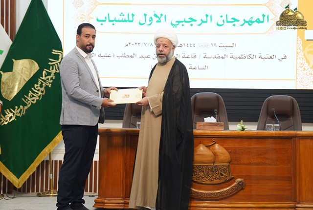 ابتهاجاً بيوم التتويج الإلهي لوصي رسول الله "صلّى الله عليه وآله وسلّم" أمير المؤمنين وقائد الغر المحجلين الإمام علي بن أبي طالب "عليه السلام" في غدير خُم، وضمن فعاليات أسبوع الولاية المبارك أقامت الأمانة العامة للعتبة الكاظمية المقدسة حفل تكريم الفائزين في المهرجان الرجبي الأول للشباب في مجال الأدب والفنون وكتابة المقال، والقصة القصيرة، والشعر الفصيح، والرسم.
