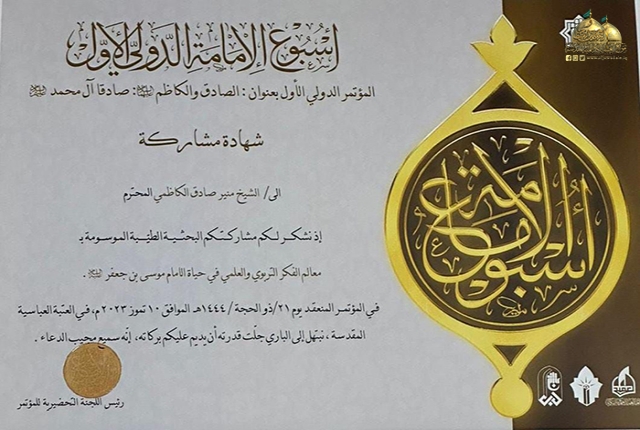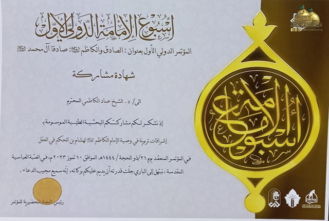 العتبة الكاظمية المقدسة تشارك في المؤتمر العلمي الموسوم بـ (الصادق والكاظم عليهما السلام صادقا آل محمد)