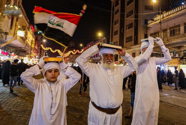 انطلاقاً من قول رسول الله "صلى الله عليه وآله وسلم": (إنّ لقتل الحسين حرارةً فى قلوب المؤمنين لا تبرد أبداً) .. وإحياءً للشعائر الحسينية التي دأبت على تأديتها مواكب مدينة الكاظمية المقدسة والشباب الحسيني في مثل هذه الأيام ومنذ مئات السنين، استقبلت رحاب الصحن الكاظمي الشريف المواكب المعزّية بذكرى عاشوراء، حيث تجسدت فيها أروع صور الولاء لأهل بيت النبوة "عليهم السلام" وهي تؤدي شعائرها، وتعبيراً عن مكانة القرآن الكريم في نفوس المسلمين واحتجاجاً على ما تعرض له من إساءة نكراء مؤخراً تم رفع نسخ من المصحف الشريف الذي دافع عنه شريك القرآن الكريم إمامنا الحسين "عليه السلام"، وصدحت حناجرهم بعبارات الحزن والأسى وهم يحيون الذكرى الأليمة لاستشهاد أبي الأحرار الإمام الحسين "عليه السلام" واستذكار نهضة الطفّ الخالدة عبر التاريخ، وتقديم التعازي والمواساة إلى الإمامين الهمامين الكاظمين الجوادين "عليهما السلام" وكان في استقبال تلك الجموع خدّام العتبة المقدسة في وحدة الشعائر الحسينية التابعة لقسم العلاقات العامة.