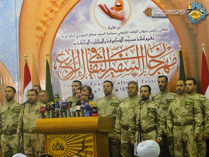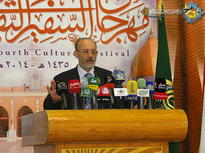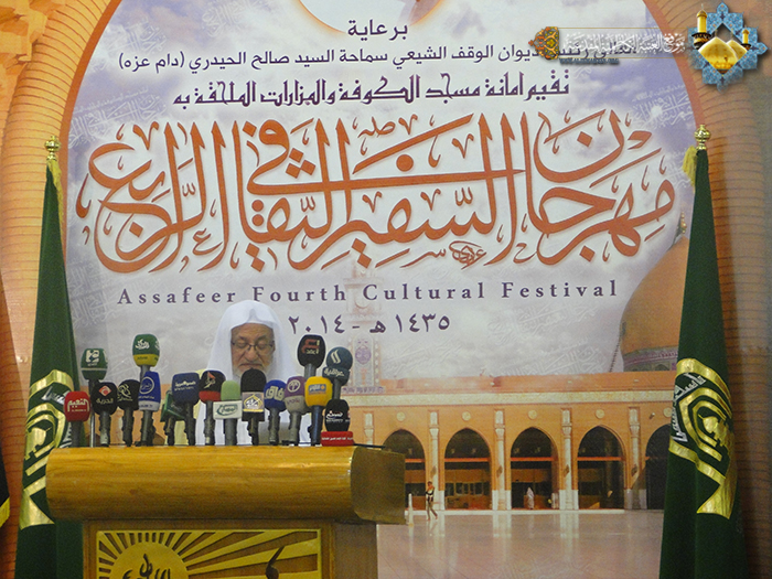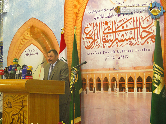 شاركت العتبة الكاظمية المقدسة بوفد ترأسه أمينها العام أ. د "جمال الدباغ" في حفل افتتاح فعاليات مهرجان السفير الثقافي الرابع الذي أقامته الأمانة العامة لمسجد الكوفة المعظم والمزارات الملحقة به، يوم السبت 5 شوال 1435هـ الموافق 2/8/2014م والذي يستمر لمدة ثلاثة أيام، وذلك تزامناً بيوم الكوفة يوم دخول مسلم بن عقيل "عليه السلام" مبعوثاً للإمام الحسين "عليه السلام" في الخامس من شوال سنة 60 للهجرة واحتفاءً بهذه الشخصية الخالدة ودورها الكبير في النهضة الحسينية، وقد رعى الحفل معالي رئيس ديوان الوقف الشيعي سماحة السيد "صالح ‏الحيدري" وبحضور ممثلي العتبات المقدسة والمزارات الشريفة في العراق ونخبة من الشخصيات الدينية والعلمية والثقافية والسياسية والفكرية الوافدة من داخل وخارج العراق فضلاً عن حضور بعض رؤساء وأساتذة ‏الجامعات العراقية.‏ وشهد حفل الافتتاح فعاليات عدة استهلت بتلاوة معطرة من الذكر الحكيم وقراءة سورة الفاتحة المباركة ترحماً على أرواح شهدائنا الأبرار وكلمات بالمناسبة وعرضاً للأفلام الوثائقية، كما تم خلاله الإعلان عن أسماء الفائزين في جائزة السفير الكبرى للإبداع الثقافي ‏والفكري في مجالات( القصة، والقصة القصيرة، والمسرحية، والخطابة، والرواية)، وقراءة رسالة المهرجان باللغة الانكليزية. ‏‏ وأعرب رئيس ديوان الوقف الشيعي سماحة السيد "صالح الحيدري" عن استعداد ديوان الوقف الشيعي التام بتقديم كل الدعم والمساندة لإنجاح مثل هذه المهرجانات الثقافية التي تسعى لإحياء رموزنا وقادتنا وتسلط الأضواء على تصديهم ومحاربتهم للظلم والفساد وجهودهم في الحفاظ على وحدة الأمة . هذا وقد تخلل المهرجان على جلسات بحثية وندوات علمية ودراسات قرآنية فضلاً عن الأمسيات الشعرية التي شارك بها أحد شعراء العتبة المقدسة الأستاذ "رياض عبد الغني الكاظمي" بقصيدة عنوانها "السفير الثاني" ومنها هذه الأبيات: أكوفانُ أنتِ على موعدٍ مع الفارس الغائبِ المنُظَرِ سفيرٍ أعدّ لآتي الزمانِ وذخرِ عن النصرِ مُستَأخَرِ سفير الحسين الذي نظّرتْهُ يدُ الغيبِ للمشهدِ الأكبرِ ومن الفعاليات الأخرى لمهرجان السفير الثقافي الرابع تم افتتاح معرض الكتاب الدولي والخط العربي والصور الفوتوغرافية من قبل سماحة السيد رئيس ديوان الوقف الشيعي وبرفقته الأمين العام للعتبة الكاظمية المقدسة أ. د" جمال الدباغ" واطلعوا خلالها على المعروضات الأعمال الفنية التي شهدها المعرض . ومن الجدير بالذكر أن للعتبة الكاظمية المقدسة مشاركة واسعة في جناح متميز استقطب اهتمام وإعجاب الجمهور والعديد من الشخصيات الثقافية والاجتماعية المشاركة في هذا الكرنفال الثقافي وذلك من خلال معروضاته القيّمة من اللوحات الخشبية المتنوعة التي شاركت فيها شعبة النقش والزخرفة وبعض الأعمال الفنية الأخرى التي شاركت فيها وحدة الحفر على المرمر التابعة لقسم الشؤون الخدمية، كما كان لقسم الشؤون الفكرية والثقافية دور كبير من خلال مطبوعاته وتنوع إصداراته الدورية وعناوينه الجديدة ومشاركة معرض الجوادين الدائم للكتاب بالمؤلفات القيّمة والقصص القرآنية التي سلطت الضوء على التراث العلمي والفكري الثّر للإمامين الجوادين "عليهما السلام" بصورة خاصة فضلاً عن معارف أهل البيت "عليهم السلام" وسيرتهم العطرة .