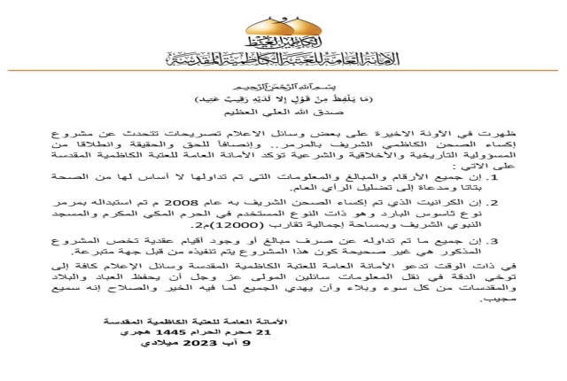 بيان الامانة العامة للعتبة الكاظمية المقدسة
