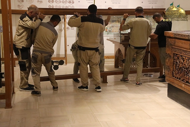 تنفيذاً لتوجيهات الأمين العام للعتبة الكاظمية المقدسة، خادم الإمامين الكاظمين الجوادين الدكتور حيدر حسن الشمّري، وضمن إطار التعاون المشترك بين مركز الكاظمية لإحياء التراث التابع للعتبة الكاظمية المقدسة مع الهيأة العامة للآثار والتراث، حول صيانة وتغليف بعض المقتنيات التابعة للمشهد الكاظمي الشريف في أروقة المتحف الوطني العراقي، اختتمت ولله الحمد المرحلة الأخيرة وهي الثالثة من الأعمال التي شاركت فيه جهات متعددة، حيث ختمت وحدة النجارة والألمنيوم التابعة لشعبة الهندسة الميكانيكية في العتبة المقدسة أعمالها الفنية والحرفية في أروقة متاحف الهيأة والمتمثلة بمراحلها الثلاث وهي: الأولى: عمل منضدة خشبية من الصاج الماكيت نموذج مصغر للمشهد الكاظمي من عمل الصائغ السيد (محمد هاشم الوردي) والذي أهداه للملك فيصل الثاني عام 1953م.