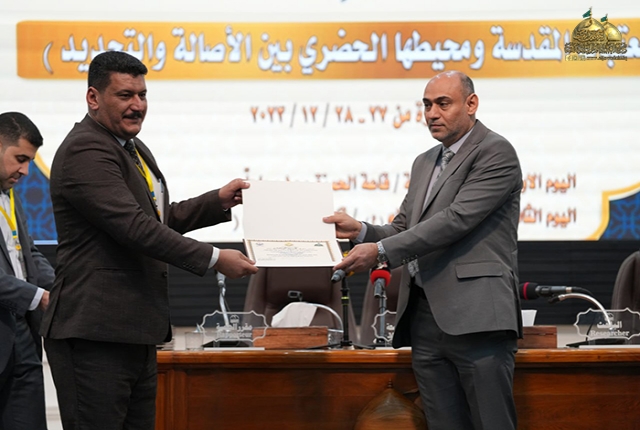 بعدها بدأت أعمال الجلسة العلمية الأولى للمؤتمر التي تناولت في محورها الأول الفكر المعماري الإسلامي في العتبات المقدسة، والجوانب الفكرية والفلسفية في عمارة العتبات المقدسة وطرازها المعماري، والمحور الثاني استعرض الفضاء الحضري المحيط بالعتبات المقدسة، والجوانب الفكرية والفلسفية لمرتكزات الحفاظ على هوية المحيط الحضري، أما المحور الثالث فشهد موضوعات عن مقومات الاستدامة للعتبات المقدسة في العراق، وطرح مقومات الاستدامة في أصول إعادة إحياء وتأهيل واقع عمارة العتبات المقدسة، وضمان تنظيم مدخلات التطور التكنولوجي المعاصر في العتبات المقدسة ومحيطها الحضري (الدينية والاجتماعية والبيئية والحضرية). واختتم المؤتمر في يومه الأول بمداخلات وأسئلة السادة الحاضرين أثرتها من حيث الطرح والحوار وتم توزيع الدروع التذكارية والشهادات التقديرية على المشاركين.