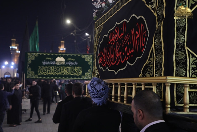 وشارك تلك الجموع المعزّية موكب خدّام الإمامين الجوادين "عليهما السلام"، بعدها تجمهرت المواكب المعزّية في رواق سيدنا عبد الله بن عبد المطلب "عليه السلام" لتختتم مسيرتها بمجلس تأبيني مستذكرين خلاله مآثرها "عليها السلام" وأبعاد مسيرتها الإنسانية والإيمانية والرسالية والاجتماعية، ودورها الكبير في حياة الأمة وتضحياتها بالغالي والنفيس وجهادها المرير، ومواقفها الصلبة في الحفاظ على مفهوم المسيرة المحمدية، ثم ابتهل المعزّون إلى الله العليّ القدير بالدعاء بتعجيل فرج مولانا القائم من آل محمد "عجل الله فرجه الشريف"، وأن يرحم شهداءنا، وأن يعم الأمن والأمان على بلدنا العزيز وشعبنا الأبي الصابر.