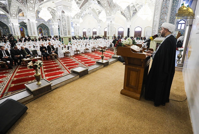 وأضاف فضيلته: نوجه دعوتنا اليوم إلى الآباء والأمهات أكثر من أي وقت مضى إلى التمسك بمبادئ الوعي والثقافة الإسلامية، حيث تقع على عاتقهم مسؤولية كبيرة ألا وهي محاربة العدو الذي يريد أن يسلب أبنائنا من أحضان قيمنا الأصيلة، فضلاً عن محاربة كل أشكال الانحراف الأخلاقي والعقائدي وحث بناتهم على الالتزام بالعفة وبالحجاب الصحيح ونبذ التبرج والابتذال).