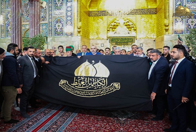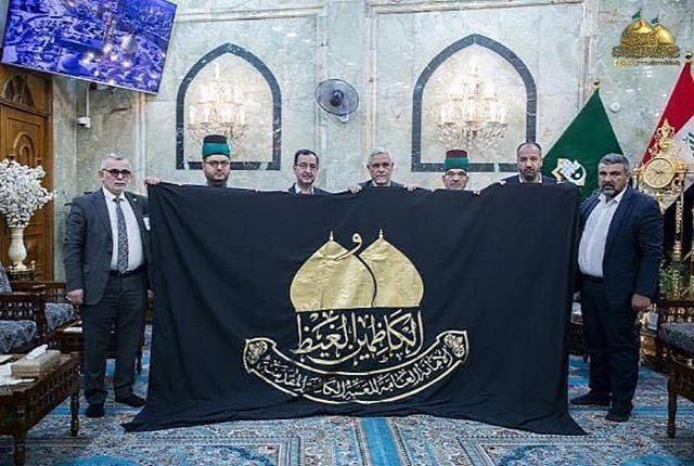 الأمانة العامة للعتبة الكاظمية المقدسة تُسلّم الراية المباركة للإمامين الكاظمين "عليهما السلام" إلى العتبات المقدسة