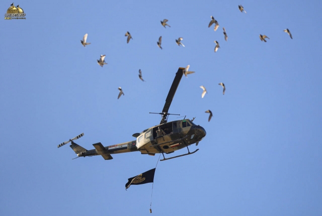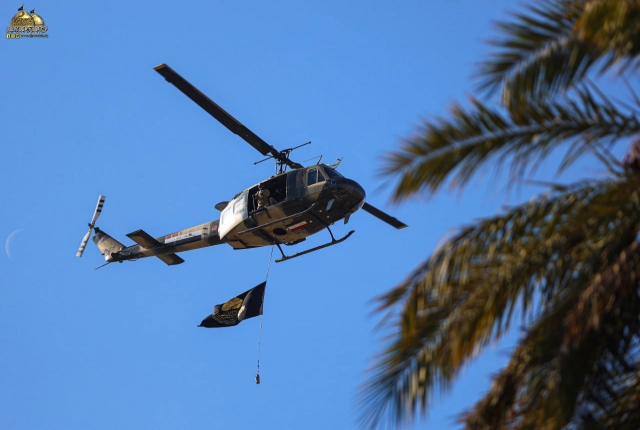 راية الإمامين الكاظمين ترفرف في أجواء بغداد في فعالية لأبطال طيران الجيش