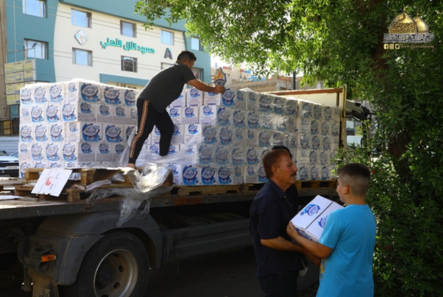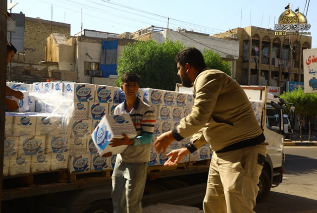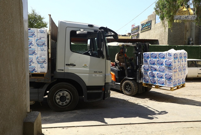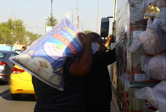 الأمانة العامة للعتبة الكاظمية المقدسة ترفد المواكب الخدمية بالمواد الغذائية الجافة