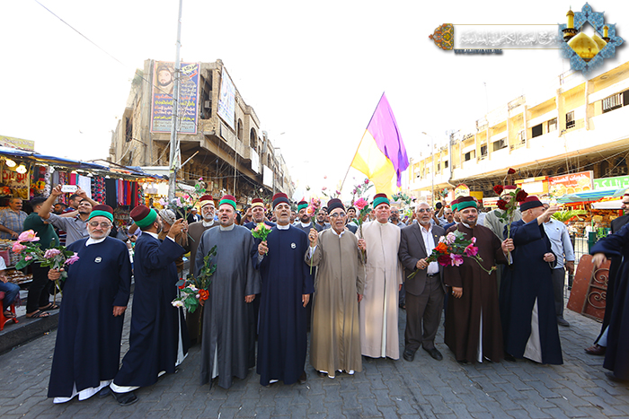 تجديداً للعهد والولاء لسيد البلغاء والمتكلمين أسد الله الغالب الإمام علي بن أبي طالب"عليه السلام" نظم موكب خَدَمَة العتبة الكاظمية المقدسة مسيرة ولائية انطلقت من حسينية آل الصدر متجهة نحو المشهد الكاظمي وصولاً إلى مرقد الإمامين الهمامين الكاظمين "عليهما السلام"، صدحت بها حناجر المشاركين بالهتافات التي عبرت عن الولاء المطلق للإمام علي بن أبي طالب "عليه السلام"، و تحفهم رايات العهد الولاء حاملين الشموع ابتهاجاً بعيد الولاية الكبرى والإمامة العظمى.
