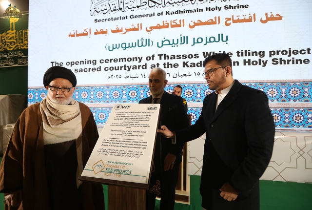 تيمناً بالذكرى المباركة لولادة منقذ البشريّة من الظلم والجور، وناشر راية الهدى في كلّ بقاع العالم بقية الله في أرضه الإمام الخاتم المهدي المنتظر "عجل الله فرجه الشريف"، وبرعاية مباركة من قبل الأمين العام للعتبة الكاظمية المقدسة، خادم الإمامين الكاظمين الجوادين الدكتور حيدر حسن الشمّري، شهدت العتبة الكاظمية المقدسة حفل تسليم وافتتاح المشروع التبرعي وهو إعادة تأهيل الصحن الكاظمي الشريف الذي تم اكساء أرضيته وجدرانه بالمرمر الأبيض الثاسوس اليوناني على مساحة تقدر بـ(12,500م2).