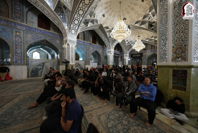 خفقت رايات الحزن من جديد لتتقد معها نيران الأسى واللوعة في قلوب الموالين لذكرى استشهاد نبراس أهل بيت النبوة "عليهم السلام" الإمام الثامن علي بن موسى الرضا "عليه السلام"، وإحياءً لهذه المناسبة الأليمة التي تتزامن مع موسم أربعينية الإمام الحسين "عليه السلام، أقام موكب خدّام الإمامين الجوادين ضمن منهاجه الديني والثقافي في رواق سيدنا عبد الله بن عبد المطلب "عليه السلام" مجلساً عزائيا خاصاً بمشاركة كل من: فضيلة الشيخ منير الكاظمي، وفضيلة الشيخ قاسم الخفاجي، وفضيلة الشيخ ليث العبيدي، الذين أفاضوا في بحثهم حول السيرة المباركة للإمام الرضا "عليه السلام" التي خرجت من ربوع المدينة الطيبة دار هجرة النبي المصطفى "صلى الله عليه وآله"، وانطباعات شخصية عالِم آل محمد "عليه السلام" ودوره الريادي في حفظ التراث الإسلامي.
