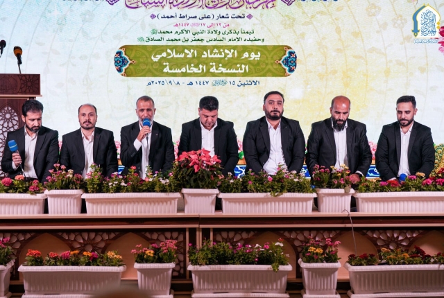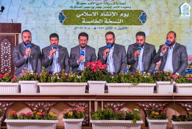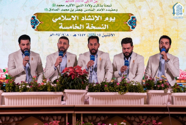 لمناسبة ذكرى ولادة خير المرسلين الصادق الأمين محمد "صلى الله عليه وآله" والتي تتزامن مع ولادة حفيده سليل الإمامة سادس أئمة الهدى جعفر بن محمد الصادق "عليه السلام"، وتواصلاً لفعاليات مهرجان ربيع الولادة السابع الذي يُقام تحت شعار: (على صِراط أحمد)، شهدت رحاب الصحن الكاظمي الشريف، حفل يوم الإنشاد الإسلامي بنسخته الخامسة الذي يمثل رسالة محبة وسلام ونشر فكر النبي الأكرم وآله الأطهار "صلوات الله عليهم أجمعين" من خلال توظيف فن الانشاد حينما تخاطب كلماته الأرواح والأفئدة وتحلق في عالم الإبداع والجمال، بحضور كوكبة من الأصوات الشابة الواعدة في ميدان الإنشاد الحُسيني، وجمع من الزائرين الكرام.