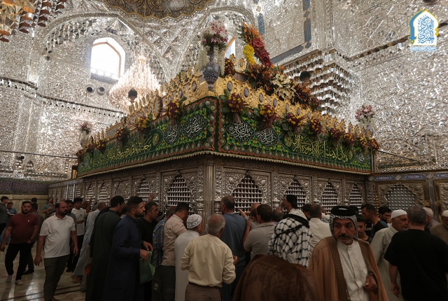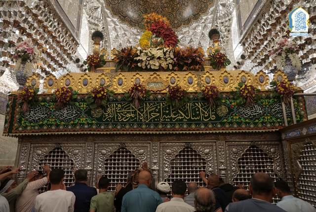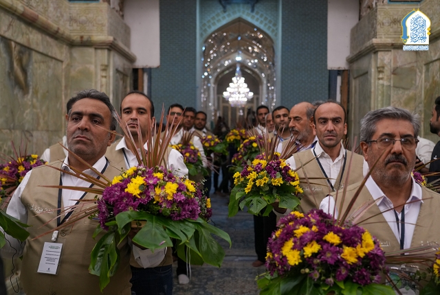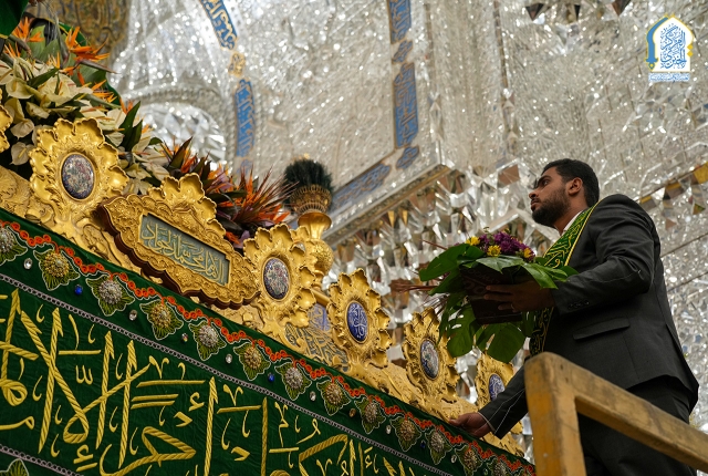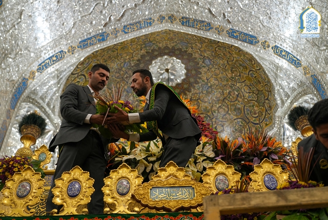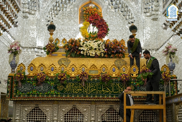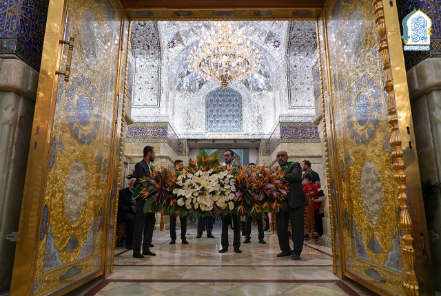 أكاليل من الزهور تتوّج ضريح الإمامين الكاظمين الجوادين "عليهما السلام"