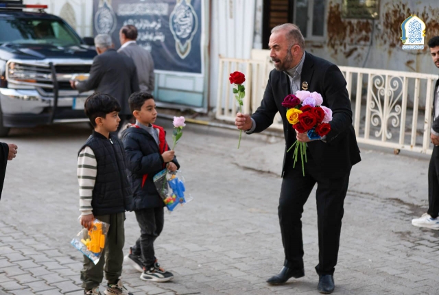 أفراح تتوشح بنور الإمام الجواد العتبة الكاظمية المقدسة توزّع الزهور ابتهاجاً بذكرى ولادته المباركة