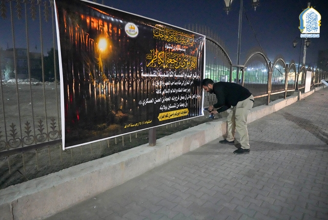 وفي هذا السياق اتّشحت العتبة الكاظمية المقدسة بمظاهر الحزن والأسى ونشر السواد والكلمات النورانية على أعمدة الطارمات والأواوين في الصحن الكاظمي الشريف، فضلاً عن نشرها في شوارع مدينة الكاظمية المقدسة، وطرق الزائرين في عددٍ من أحياء محافظة بغداد إيذاناً بإعلان الحِداد.