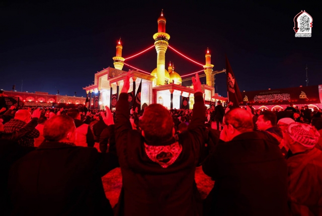 خّدام العتبة الكاظمية المقدسة يرفعون رايتَيْ الحُزن والصبر وسط ذرف الدموع وتعالي الهتافات (لبيك يا موسى الكاظم)