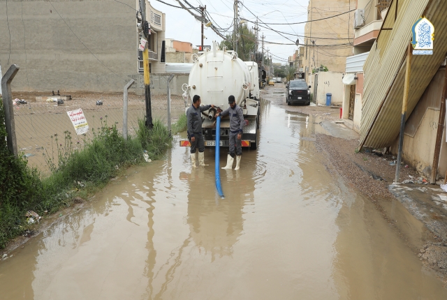 الأمانة العامة للعتبة الكاظمية المقدسة تستجيب لمناشدات المواطنين والإسهام في سحب مياه الأمطار في العديد من المناطق