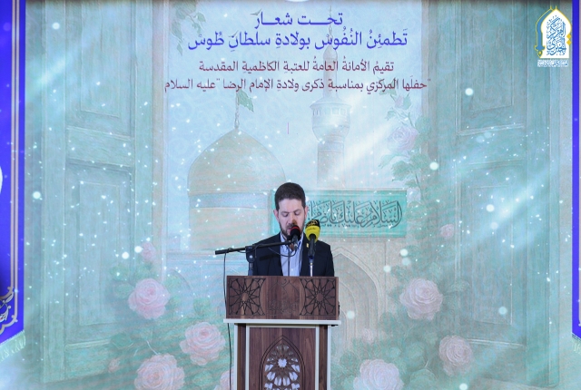 استهلت فعاليات الحفل بتلاوة آيٍ من الذكر الحكيم شنّف بها أسماع الحاضرين القارئ علي الخفاجي، أعقبتها كلمة العتبة الكاظمية المقدسة وألقاها الأمين العام وقد جاء فيها قائلاً: (نرفع أسمى آيات التهاني والتبريكات إلى مقام الإمام صاحب العصر والزمان "عجل الله فرجه الشريف"، وإلى مقام المرجعية الدينية العُليا المتمثلة بسماحة آية الله العظمى السيد علي الحسيني السيستاني "دام ظله الوارف"، وإلى الأمة الإسلامية جمعاء لمناسبة بزوغ شمس الشموس وأنيس النفوس الإمام الثامن من أئمة الهدى "عليهم السلام"، الإمام علي بن موسى الرضا "عليه السلام" في هذا اليوم المبارك أشرقت الأرض بنور عالم آل محمد الذي جسّد في سيرته أسمى معاني الحكمة والزهد، فكان منارةً للعلم وقبلة للعارفين في طوس وخراسان والعالم.