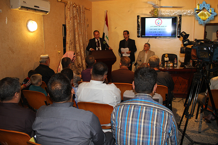 ضمن برنامجها المتواصل لدعم النازحين زار وفد خَدَمَة الإمامين الجوادين"عيهما السلام" منطقة حي الإعلام في بغداد عصر يوم السبت 14/3/2015 ، وأعدت برنامجاً حافلاً بالتعاون مع مؤسسة تطوع للمجتمع المدني لدعم النازحين وتلبية متطلباتهم والتخفيف من معاناتهم، فضلاً عن المواد الغذائية والمساعدات الإنسانية على العوائل النازحة والمهجرة، واستهل البرنامج قراءة آيٍ من الذكر الحكيم عطر مسامع الحاضرين قارئ العتبة السيد عمار الموسوي بعدها قراءة إنشودة الفردوس، أعقبها كلمة العتبة الكاظمية المقدسة ألقاها عضو مجلس إدارتها الأستاذ سعد محمد حسن نقل خلالها تحيات أمينها العام أ.د جمال الدباغ وخَدَمَتها، موضحاً حجم المسؤولية الملقاة على عاتق العتبة الكاظمية المقدسة ودورها في رعاية تلك الأسر التي عانت ما عانت نتيجة الظروف الأمنية التي يمر بها بلدنا العزيز، وسعيها الدائم في توفير مستلزمات الحياة الكريمة لهم حتى عودتهم إلى ديارهم واختتمت بالدعوات لهم للخروج من أزماتهم وتسديد خطى القوات الأمنية ومجاهدي الحشد الشعبي لتحرير أرض العراق المغتصبة من قبل الإرهاب التكفيري .