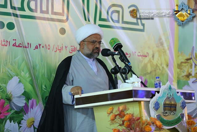 بعدها ارتقى المنصة سماحة الشيخ حيدر النصراوي ليلقي محاضرته الدينية بهذه المناسبة مستعرضاً فيها شمائل سيرة أمير المؤمنين الشريفة وسر شخصيته، ومنهج عدالته، وشهادات من ارتبط به وبفكره الإنساني مستشهداً ببعض الروايات التي وردت في كتاب علي في عيون معاصرة. وشهد الحفل مشاركة للشاعر نزار الطالقاني بقصيدة رائعة عنوانها "محراب العشق" ومنها هذه الأبيات: القلبُ في محرابِ عشقكَ راهبُ وصلاته في الحبِ فرضٌ واجبُ