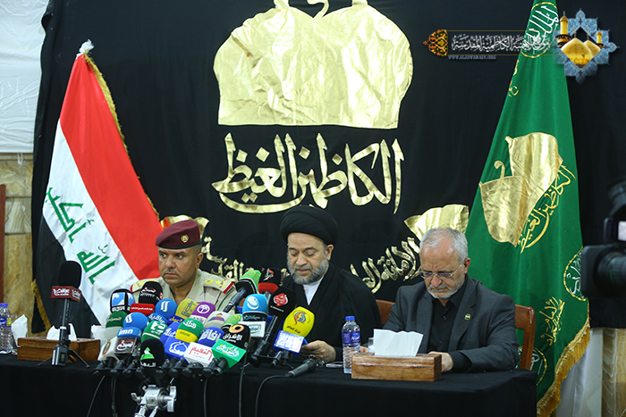 عقدت الأمانة العامة للعتبة الكاظمية المقدسة مؤتمراً صحافياً بعد ظهر اليوم حول الزيارة المليونية التي شهدتها مدينة الكاظمية المقدسة في الذكرى (1253) لاستشهاد كاظم الغيظ الإمام موسى بن جعفر "عليه السلام" وحضر هذا المؤتمر الأمين العام للعتبة الكاظمية المقدسة أ.د جمال عبد الرسول الدباغ ومعالي رئيس ديوان الوقف الشيعي سماحة السيد علاء الموسوي وقائد عمليات بغداد الفريق الركن عبد الأمير الشمري. وبيّن الأمين العام للعتبة الكاظمية المقدسة أن عدد الزائرين الذين توافدوا لإحياء مراسم ذكرى استشهاد الإمام موسى الكاظم "عليه السلام" زاد على (10) ملايين زائر زحفوا نحو العتبة المقدسة قبل أيام من الزيارة لحين بلوغ يوم الذروة ظهر هذا اليوم الخميس، الخامس والعشرين من شهر رجب الموافق 14 أيار 2015م، وأن عدد الإعلاميين بلغ (341) إعلاميا يمثلون (47) مؤسسة إعلامية و (48) قناة فضائية نقلت مراسم الزيارة نقلا مباشرا، مؤكدا في كلمته قائلاً: عرفاناً منها للجهود المباركة المبذولة ترفع الأمانة العامة للعتبة الكاظمية المقدسة أسمى عبارات الشكر والامتنان إلى مقام المرجعية العليا في النجف الأشرف المتمثلة بسماحة آية الله السيد علي الحسيني السيستاني "دام ظله الوارف" وإلى أساتذة وفضلاء الحوزة العلمية الذين قاموا بمشروع التبليغ الديني بمشاركة ما يقارب (1000) مبلّغ ومبلّغة، وإلى رئاسة ديوان الوقف الشيعي، والعتبات المقدسة والمزارات الشريفة، والشكر والثناء لجميع الأجهزة الأمنية على اختلاف صنوفها وفي مقدمتها قيادة عمليات بغداد والفرقة الثانية شرطة اتحادية واللواء الثامن الشرطة الاتحادية وفوج حماية العتبة المقدسة، وفي الجانب الخدمي الشكر والتقدير إلى أمانة بغداد ومحافظة بغداد ومجلس محافظة بغداد ووزارات الداخلية والكهرباء والنقل والدفاع والتجارة والموارد المائية والصحة وجمعية الهلال الأحمر العراقية ومنظمات المجتمع المدني، ولا تفوتنا الإشادة بدور وسائل الإعلام ودورها الفاعل في نقل مراسم الزيارة وأجوائها الإيمانية. والشكر موصول لأهالي بغداد والكاظمية المقدسة وإلى المواكب الحسينية الذين كانوا على مستوى المسؤولية لما بذلوه من جهود كبيرة لخدمة الزائرين الوافدين كما لا يفوتنا أيضا شكر المتطوعين الذين قدموا من جهات مختلفة إذ قارب عددهم "5000" متطوع، وشكر خاص إلى خَدَمَة العتبة الكاظمية المقدسة بجميع أقسامها وشُعَبها ووحداتها الذين تشرفوا بخدمة الزائرين الكرام ومواصلتهم الليل بالنهار لتقديم أفضل الخدمات ومعذرة لمن فاتنا ذكره نسأله تعالى أن يتقبل ما قدمه الجميع بقبول حسن وأن يعيد هذه المناسبة على عراقنا بالأمن والأمان وآخر دعوانا إن الحمد لله رب العالمين".