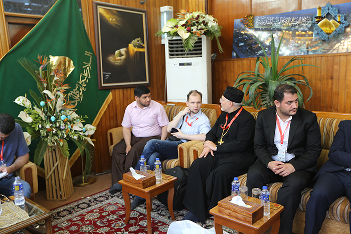 من جانبه أطلعهم الأمين العام للعتبة الكاظمية المقدسة عن دور الأمانة العامة للعتبة الكاظمية المقدسة في استقبال المناسبات الدينية لأهل بيت النبوة "عليهم السلام"، والتطور الحاصل على المستوى العمراني والخدمي والثقافي. وفي ختام اللقاء تقدمت الوفود الزائرة ببالغ الشكر والتقدير للقائمين على خدمة الإمامين الجوادين "عليهما السلام" على حسن الضيافة والاستقبال متمنين لهم التوفيق وقبول الأعمال . في السياق ذاته تحدث الأمين العام للعتبة الكاظمية المقدسة أ.د جمال الدباغ في لقاء صحافي بخصوص هذه الزيارة قائلاً: تمت استضافة الوفود المشاركة في مهرجان ربيع الشهادة السنوي الدولي بنسخته الحادية عشر، الذي تجلى تحت ظلاله القول " إن الإمام الحسين "عليه السلام للإنسانية جمعاء" حيث رأينا أشخاصاً من أنحاء العالم كافة وبلغات مختلفة، حضروا لأجل قضية واحدة، ألا وهي قضية الإمام "عليه السلام" التي دافع وضحى واستشهد من أجلها لأجل إعلاء كلمة الحق، فكان هؤلاء الضيوف من المهتمين بهذا الشأن، ومن المؤكد قد استجابوا لتلك المبادئ العظيمة، لذلك نرى أن هناك اهتماماً عالمياً كبيراً سنة بعد أخرى بقضية الإمام الحسين "عليه السلام".